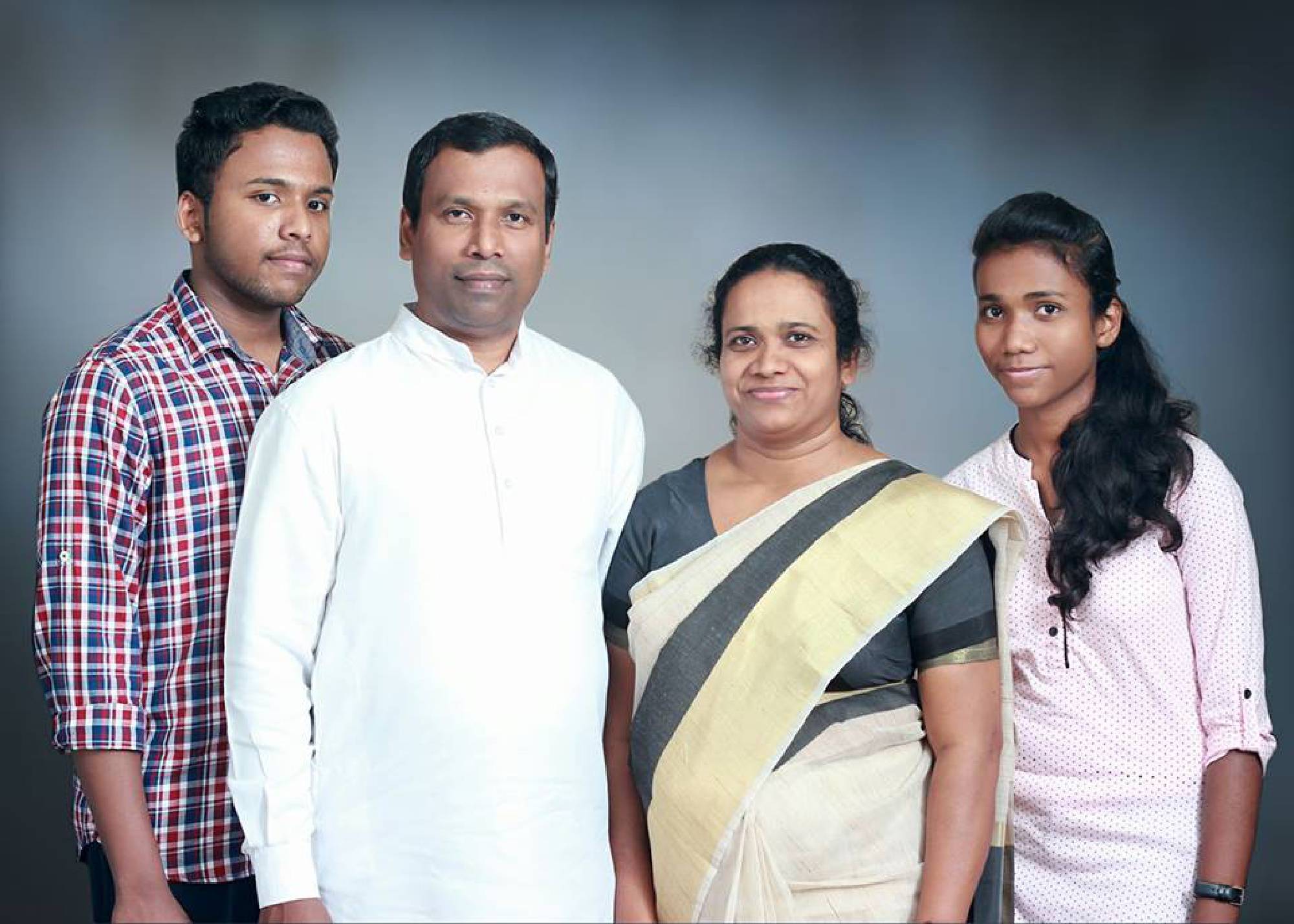 He is blessed with a prayerful partner Mrs. Saramma (Sis. Sherly) and 3 children Stanly, Stelin & Stella